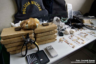 Na manhã desta sexta-feira, 21, uma equipe de policiais militares do 1º Batalhão comandada pelo Tenente Márcio Lima, fizeram apreensão de grande quantidade de drogas, dinheiro e objetos no Passo da Pátria. Mais de 12 quilos de maconha prensada, 33 gramas de cocaína, mais ou menos meio quilo de craque, uma quantidade de moedas, colete a prova de balas, capuz, balança de precisão entre outros objetos.